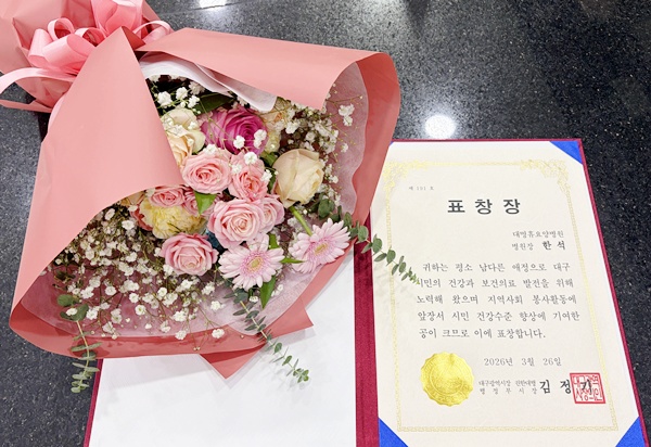 대구시로부터 대구 시민의 건강과 보건의료 발전을 위한 지역사회에 기여한 공로를 인정받아